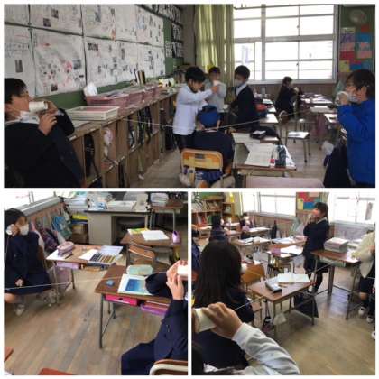 音が伝わるときのもののようすについて学習しています。今日は、糸電話で実験しました。話している時に、そっと糸に触れたり、糸をつまんだりしてみました。さて、結果はどうだったのでしょうか?