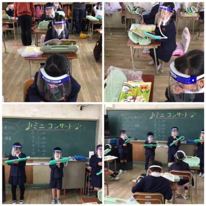 『こぐまの二月』の曲の、ミニコンサートを開きました。これまで上のパートと下のパートに分かれ、練習をしてきました。今日は、班の中で上と下にわかれ、みんなの前で発表しました。少し緊張していた人もいましたが、ミニコンサートは楽しく盛り上がっていました。
