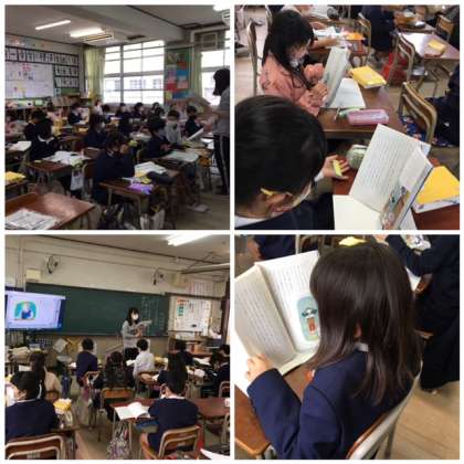 『ゆうすげ村の小さな旅館』という物語文の学習をしています。上手にリレー読みをしています。