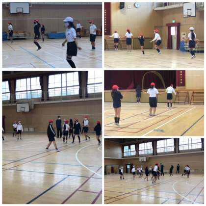 講堂で縄跳びの学習をしました。