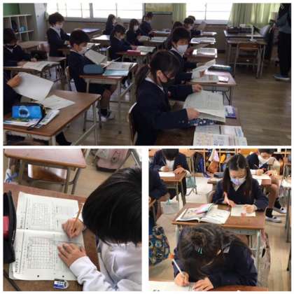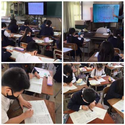 表とグラフの学習をしています。ものさしを使って、棒グラフを書いています。棒グラフにまとめると、何が多いのかが、わかりやすくなるなーと、子どもたち自身が色々と発見していました。