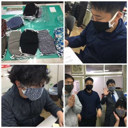 色とりどりのマスクを教職員が付けて、笑顔で、仕事をしています。