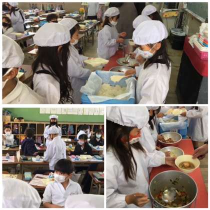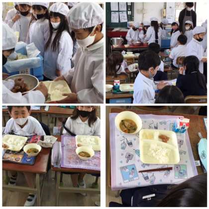 1年生は、この約1年間で、配膳がとても上手になりました。待つ人の姿勢もとてもいいですね。