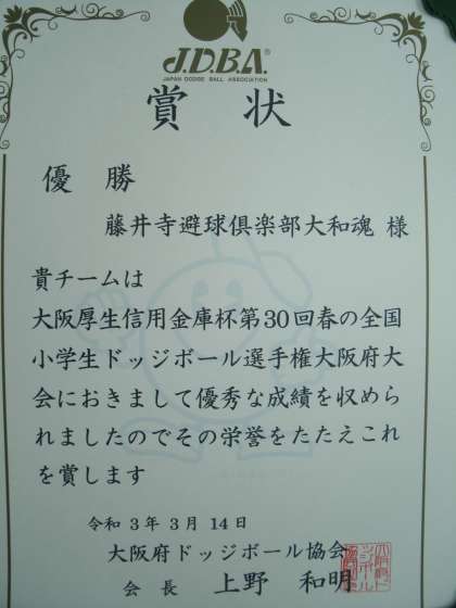 大阪府大会で 見事 優勝しました。