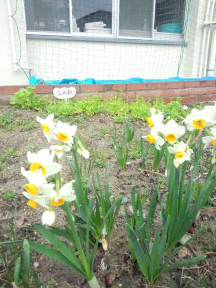 水仙が咲き、菜の花も咲くのを待っています。あと30分もすれば元気な子どもたちが校庭で遊びます!
