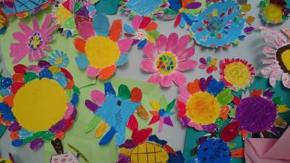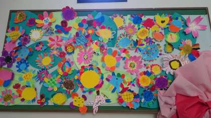 卒業式まであと9日、2年生が6年生のためにおめでとうの花をさかせました。
