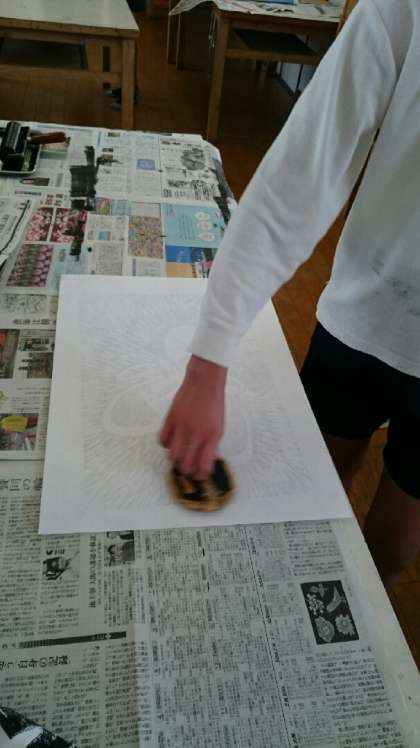 彫り終わった版画板を図工室に運んで、印刷し始めるのにほんの10分もかかりませんでした。小学校生活の中で、何度となく経験したことが、しっかりと身についている様子がよくわかります。