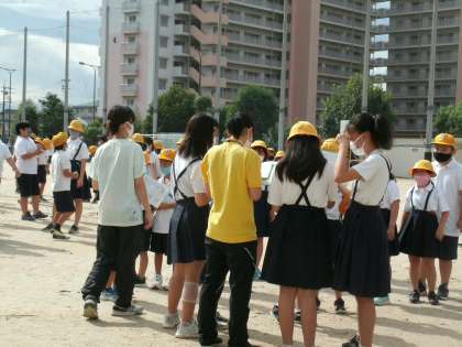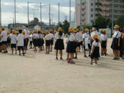朝、運動場に集まりました。