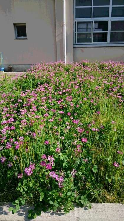 校内の田んぼは「れんげ」の花盛り、田植えの準備までかわいい花がみられます。