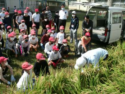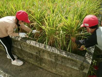稲刈り用のかまを上手に使って育ててきた稲を収穫です。