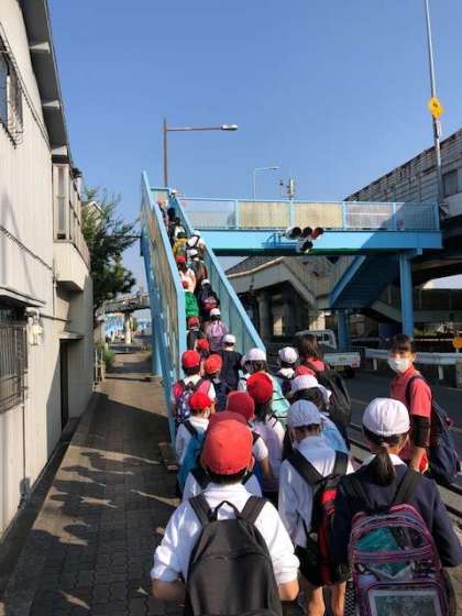 行きは「たてわり班」で久宝寺緑地へ向かいます