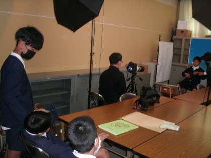 カメラマンに来ていただき、研修室にて、卒業アルバム用の個人写真を撮りました。