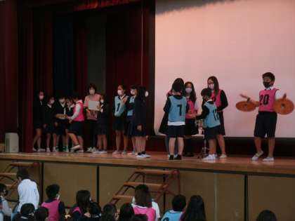 全校遠足のオリエンテーリングで高得点の班を発表し表彰しました。