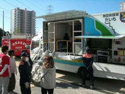 起震車で地震の揺れを体験しました