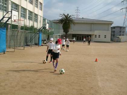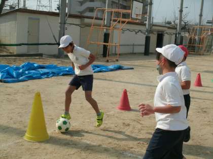 外はとても寒かったのですが、元気よく、サッカーボールでドリブルをしていました。