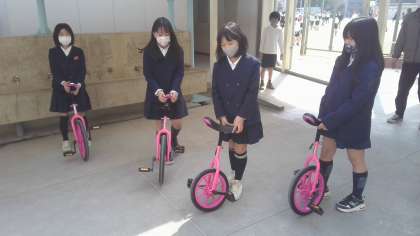 PTAで新しい一輪車を購入していただきました。早速、子どもたちが遊んでいます。