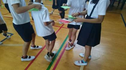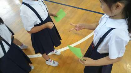 はじめてのゲームでしたが、すぐに、ルールの慣れ、みんな懸命にじゃんけんをしていました。一度、班長の手持ちのカードがなくなったところもありましたが、頑張って、復活していました。