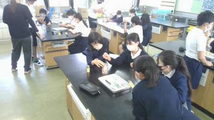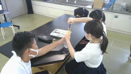 「ものが燃えるときの空気の変化」の学習で、ものが燃える前と後で、酸素と二酸化炭素の体積の割合を気体検知管で調べています。
