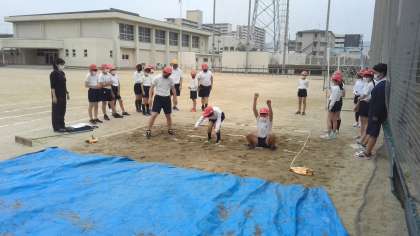 今日は、立ち幅跳びをしています。