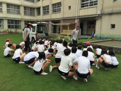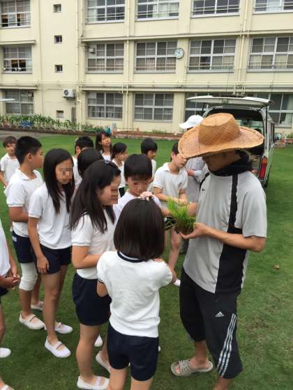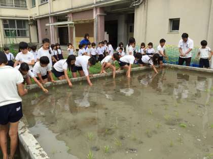 ○今日の2時間目に田植えをしました。10月になったら稲刈りをするから楽しみです。おいしいお米を食べるのが楽しみです。