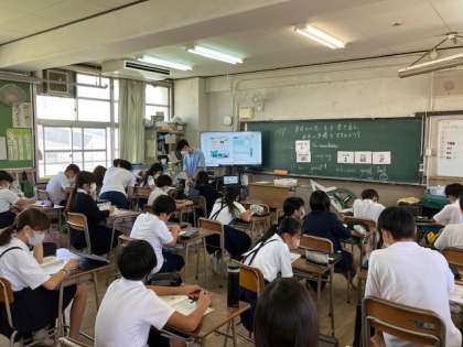 6年生の外国語では、毎週、六反中学校から先生が来てくださっています。
