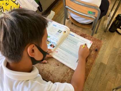 今日は、夏休みの一番の思い出を英語で表現し、友だちと伝え合う学習をしました。