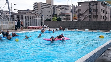 台風がまだ来ていなかったので、6年生は1・2時間目を使って最後のプールを楽しみました。