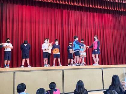 代表委員会の児童が表彰し、ドラムロールでも盛り上げていました。