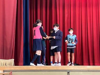先日の全校遠足でおこなったオリエンテーリングの表彰式を行いました。
