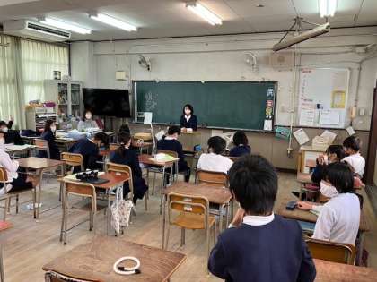 教室では、冬休みの思い出を発表したり、交流したりしていました。