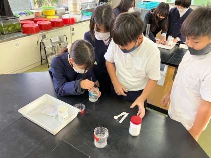 水の量を増やすと、水にとけるものの量はどうなるのだろうか?ということについて、実験をしています。