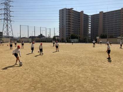 気候もよくポカポカ陽気のなか、パス練習やドリブル練習などしていました。