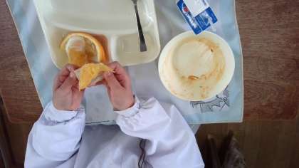 あまなつかんを食べるのに苦戦している児童もいましたが、