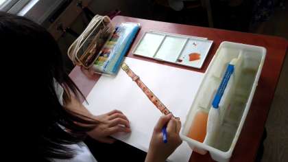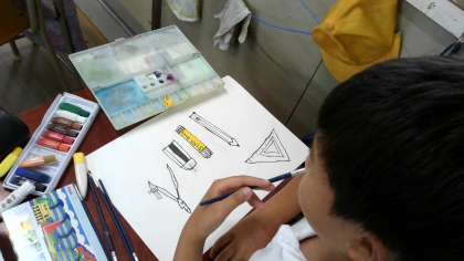 リコーダーや文房具をよく見てかいていました。