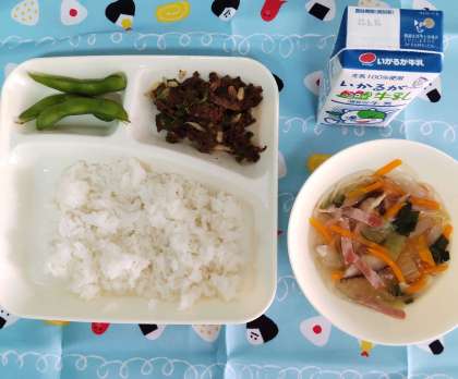 牛肉とピーマンやたけのこなどをいため、さとうやしょうゆ、オイスターソースなどで味つけしています。
