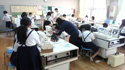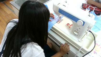ミシンの学習をしていました。糸の通し方にも一苦労していました。
