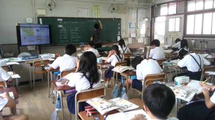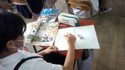 縄文時代と弥生時代の挿絵を見比べて、違いを見つけていました。
