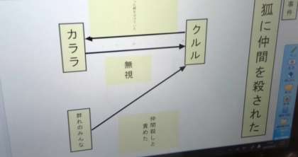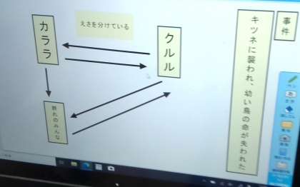 「風切るつばさ」の登場人物や出来事についてタブレットでまとめていました。