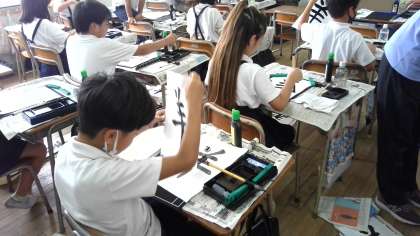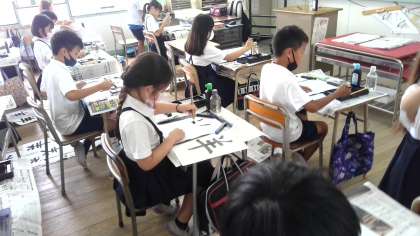 みんなお手本を見ながらいっしょうけんめい書いていました。