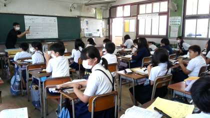 「威風堂々」の曲をリコーダーで練習していました。となりどうしでお互いの演奏を聴き合っていました。