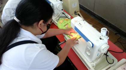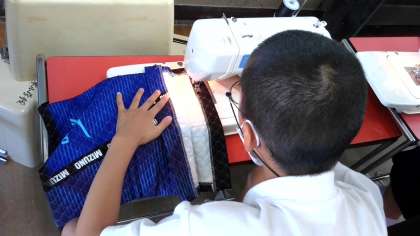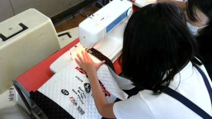 ナップザックを作っていました。出来上がったら何を入れようかな?