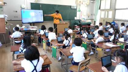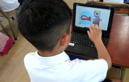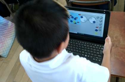 同じく「ビスケット」で、プログラミングをしていました。自分のかいた魚や動物を動かしていました。横に動かしたり、上に動かしたり、早く動かしたり、ゆっくり動かしたり・・・いろいろな動かし方を試していました。