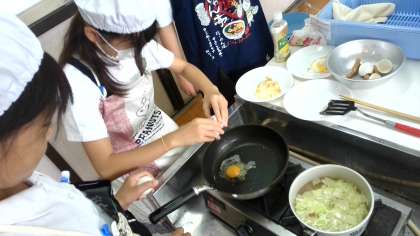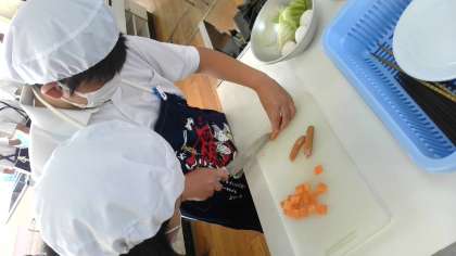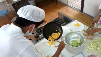 グループで協力して調理していました。
