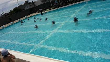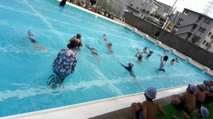 1年生は、カニやカバ、イルカなど、いろいろな生き物になって楽しんでいました。
