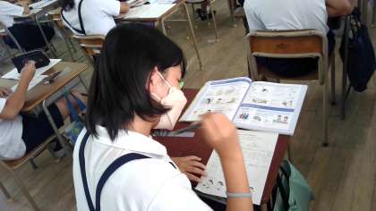 実験器具の扱い方や、実験するときに気を付けることを学習していました。