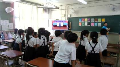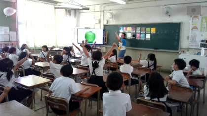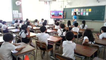 色あてクイズをしていました。グループで相談して、色を当てます。