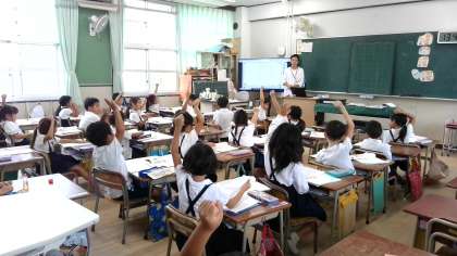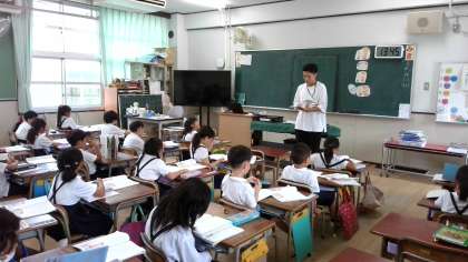 実習生の先生に「かいがら」の学習を教えてもらいました。