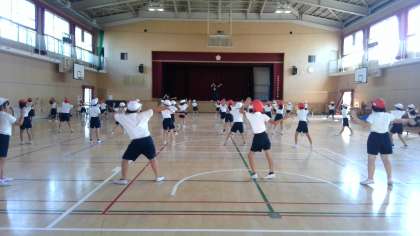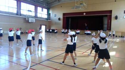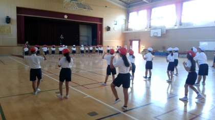 ダンスの練習です。「クレヨンしんちゃん」の曲にのって、楽しくダンスしていました。