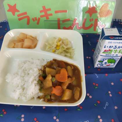 調理員さんは、こどもたちのために4種類(魚・車・星・ハート)のラッキー人参を作ってくださいました。いつもありがとうございます。