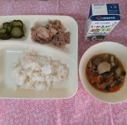 今日の給食では、さといも・れんこん・しめじを使っています。